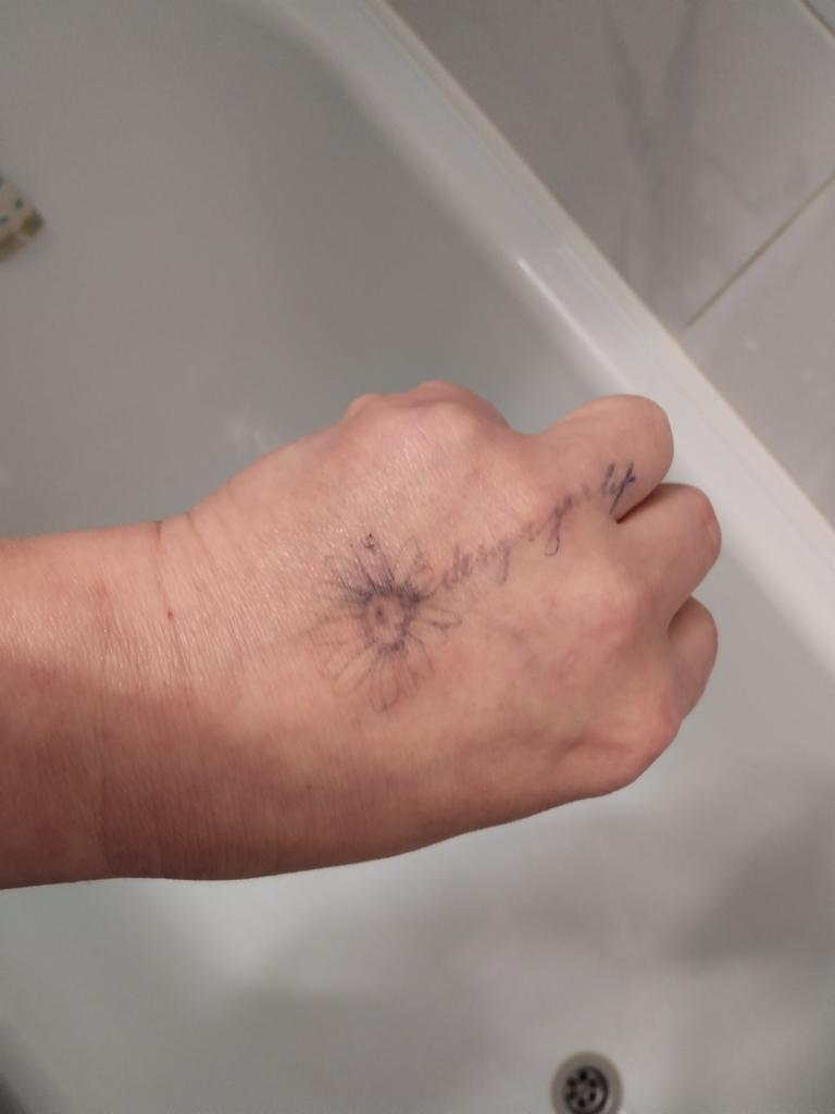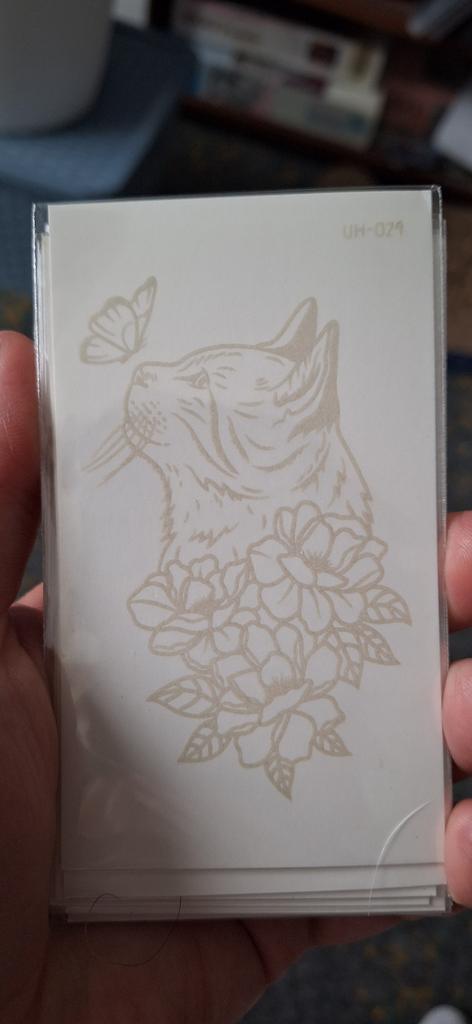L'ho ricevuto, non sono per niente soddisfatto, l'ho ordinato nero, ma è arrivato azzurro, beh non sembra un tatuaggio, non lo consiglio