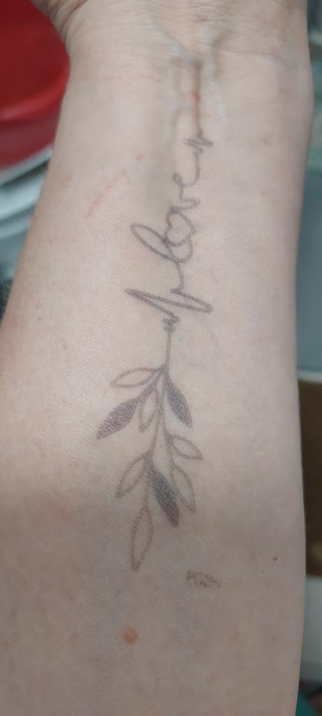 Per qualche motivo il tatuaggio non è di un nero brillante. Non lo so, forse è quello che ci vuole.