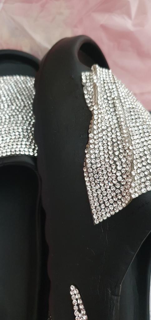 Semplici infradito di plastica decorate con un nastro di strass, le ho prese per un resort, ma no, sono troppo semplici e goffe.