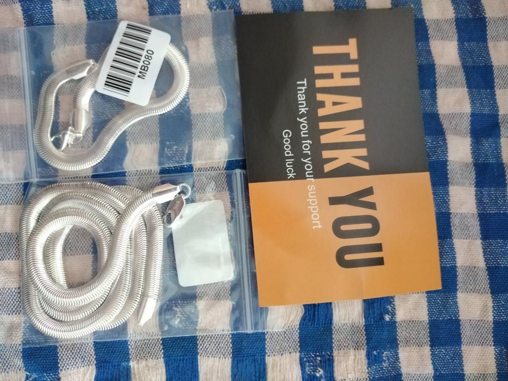 La catena e il bracciale sono molto belli, mi sono piaciuti, vedrò la qualità in fase di utilizzo. Grazie per il buon umore. L'unico inconveniente è la consegna lunga.