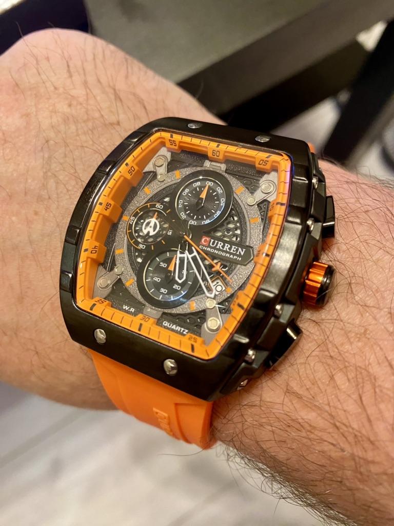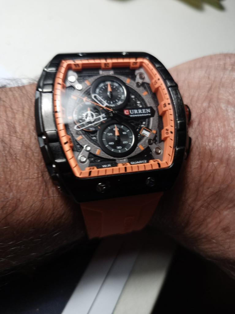 Orologio bello e comodo. Per niente pesante. Istruzioni nella scatola. Cinturino in morbido caucciù. Vetro vero. Qualità da Curren!