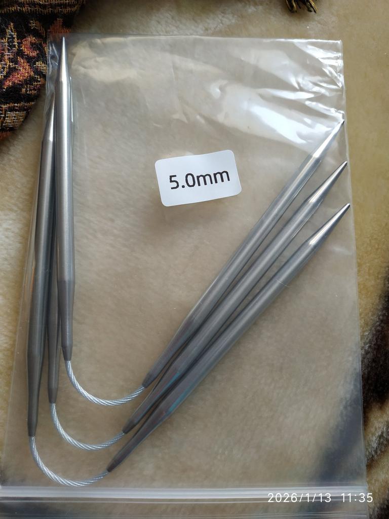 L'ordine è durato quasi un mese. Ho ordinato 2.5 e 3.5 insieme. Non l'ho ancora usato affatto: imparerò a lavorare a maglia in cerchio su un trio. Ma tutto sembra molto dignitoso, i ferri da maglia sono uniformi, lisci, il cavo è resistente al tatto e all'aspetto. Ogni misura di ferri da maglia è confezionata in una busta con cerniera stretta, anche l'imballaggio esterno è sigillato, quindi tutto è arrivato in perfette condizioni.