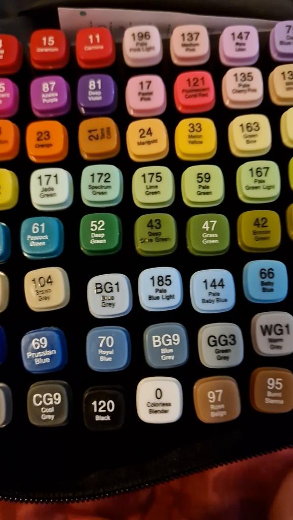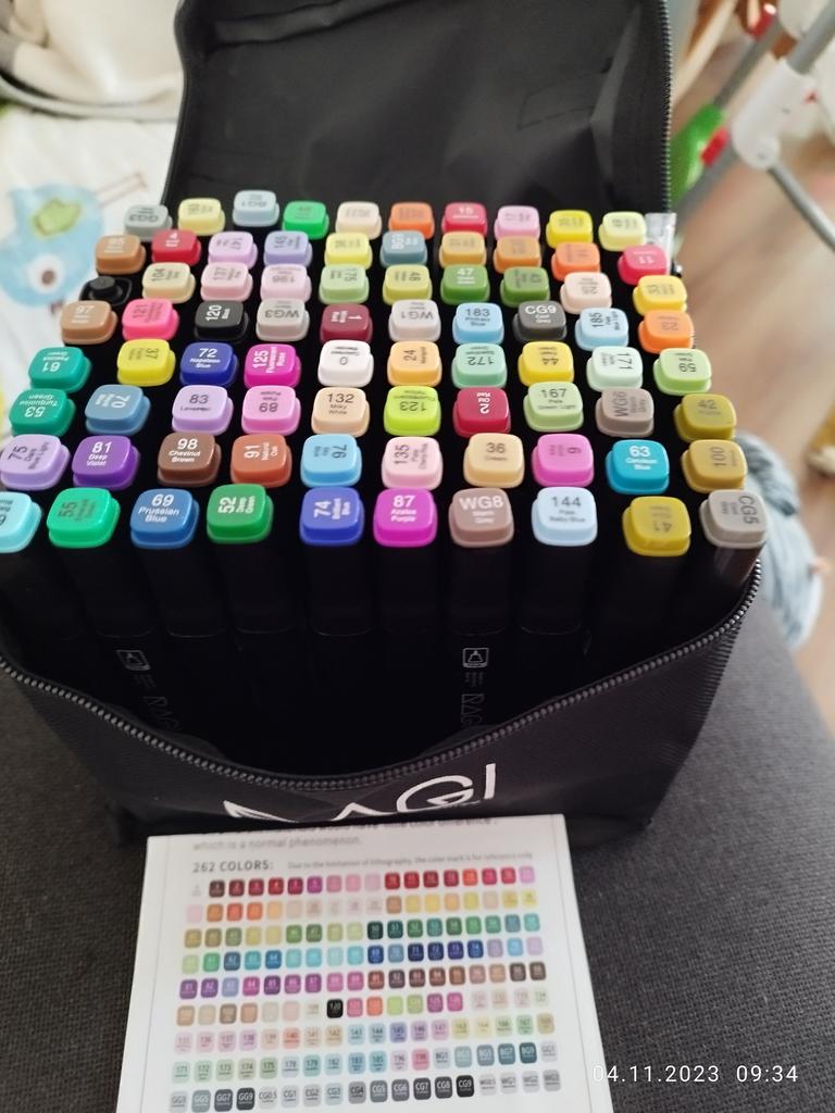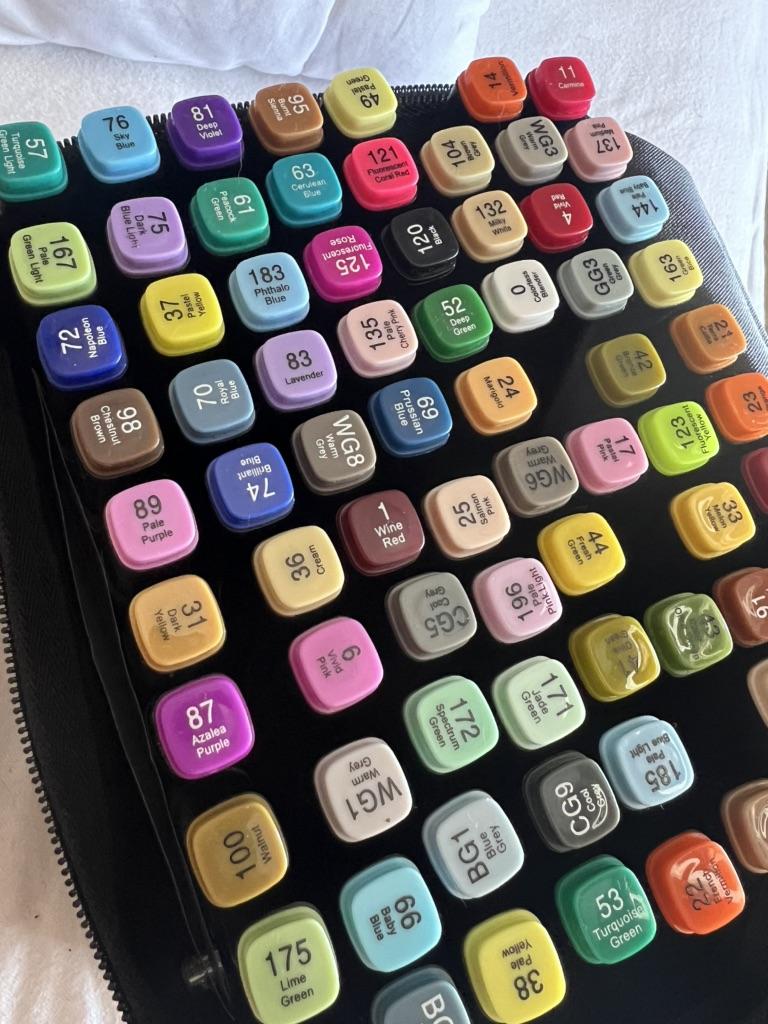 Attenzione! Das das 80-teilige Markerset zwei Marker enthält, die sich von den auf der Verpackungspalette abgebildeten Farben Unterscheiden.