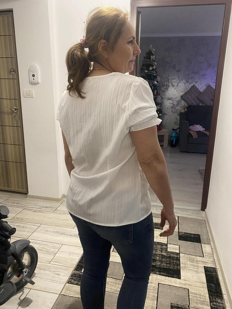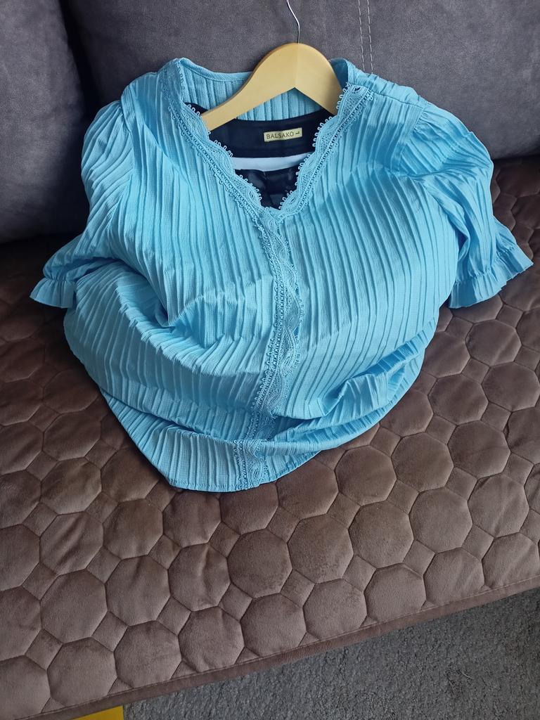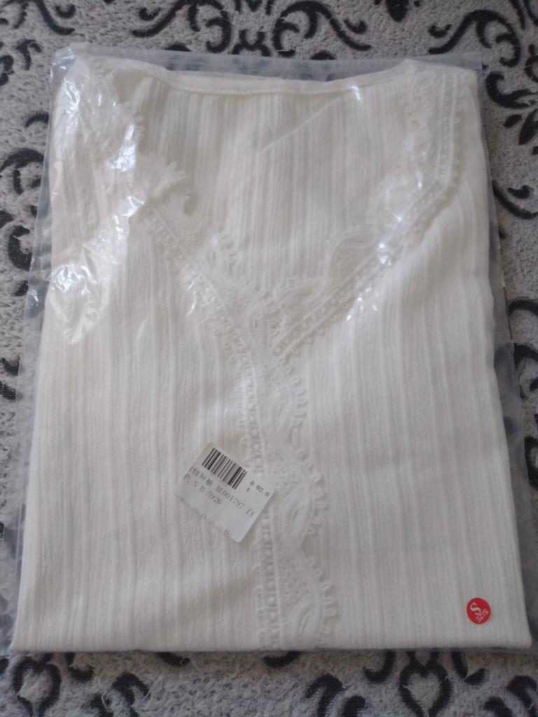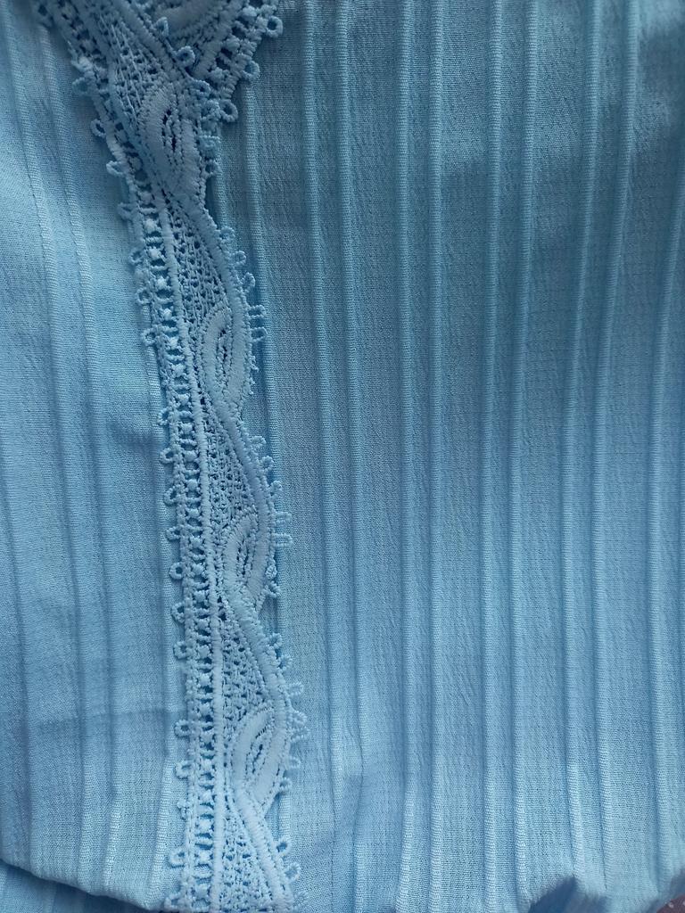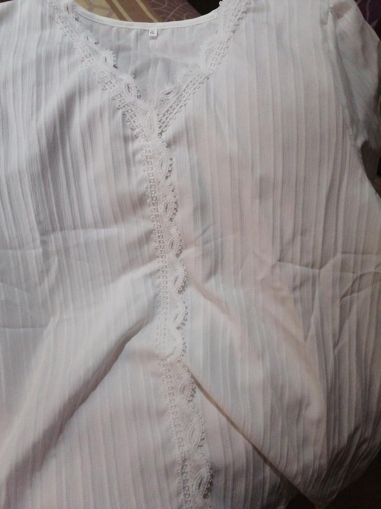 La camicetta è piaciuta, il tessuto è leggero ma non trasparente, i pizzi la decorano molto, la manica a sbuffo è comoda, si può indossare sia per uscire che per una passeggiata. La taglia è andata bene, porto la taglia 46-48