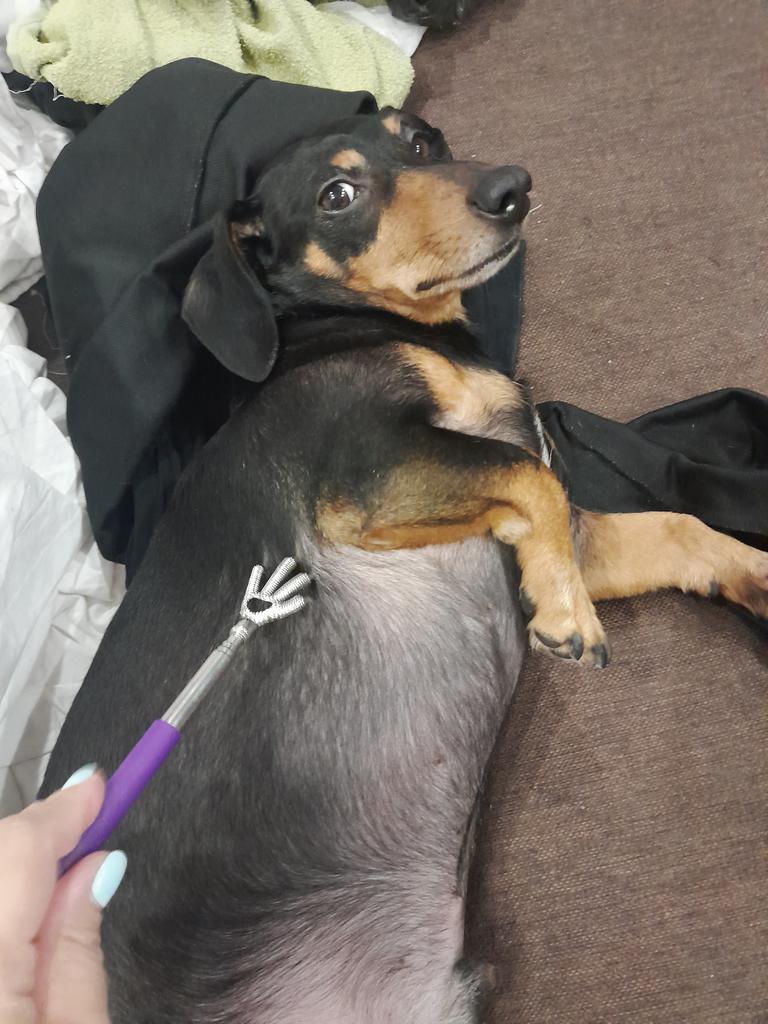 Raschia-schiena e pancia eccellente, il manico è estensibile, l'ho presa per il mio cane, è entusiasta è arrivato velocemente 10 giorni