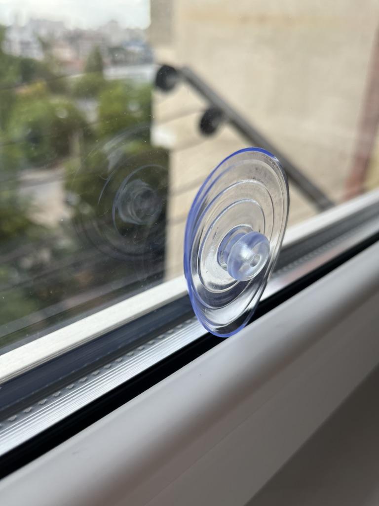 Per il momento ho installato solo una delle due tende ordinate. L'installazione è semplice. Per tua informazione, ho pulito energicamente la finestra con alcool in corrispondenza delle 3 ventose (due per appendere il rullo in alto, una per tenere fermo il gancio in basso quando si abbassa la tenda) per avere la migliore presa possibile. Dato che oggi è molto grigio, non posso ancora giudicare se fa buona ombra al sole. Resta da vedere anche cosa farà nell'uso, dopo averlo abbassato/alzato almeno dieci volte. In particolare, le ventose sono abbastanza potenti da resistere a lungo senza allentarsi con la tensione esercitata quando la tenda viene abbassata?