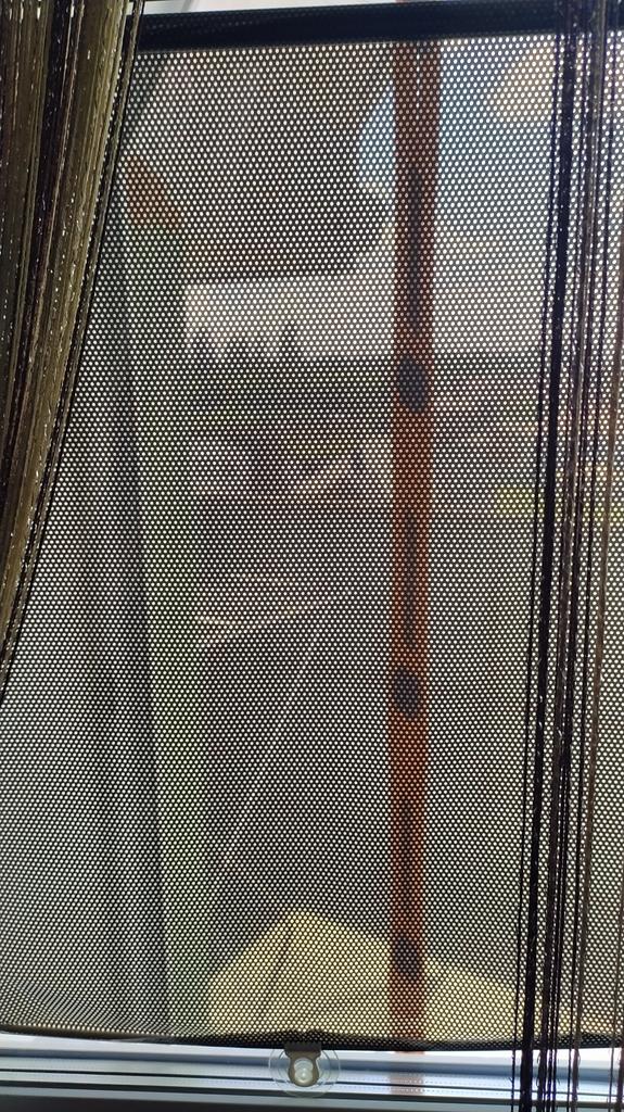 Tende fantastiche! Oscurano, ma sono trasparenti. In realtà, pensavo che fossero come una rete, ma sono fatte di una pellicola liscia, continua e di plastica con un disegno applicato.