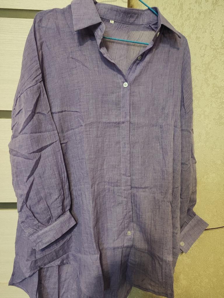 Blusa fantastica. Il materiale è leggero. Non è trasparente. Temevo che fosse grande. La lunghezza delle maniche è come nella foto. Per le mie braccia, la manica scesa non è molto adatta. La cucitura cade proprio nel punto più largo. Per il resto, tutto è perfetto. Il colore è piacevole. Si poteva prendere una taglia in meno.