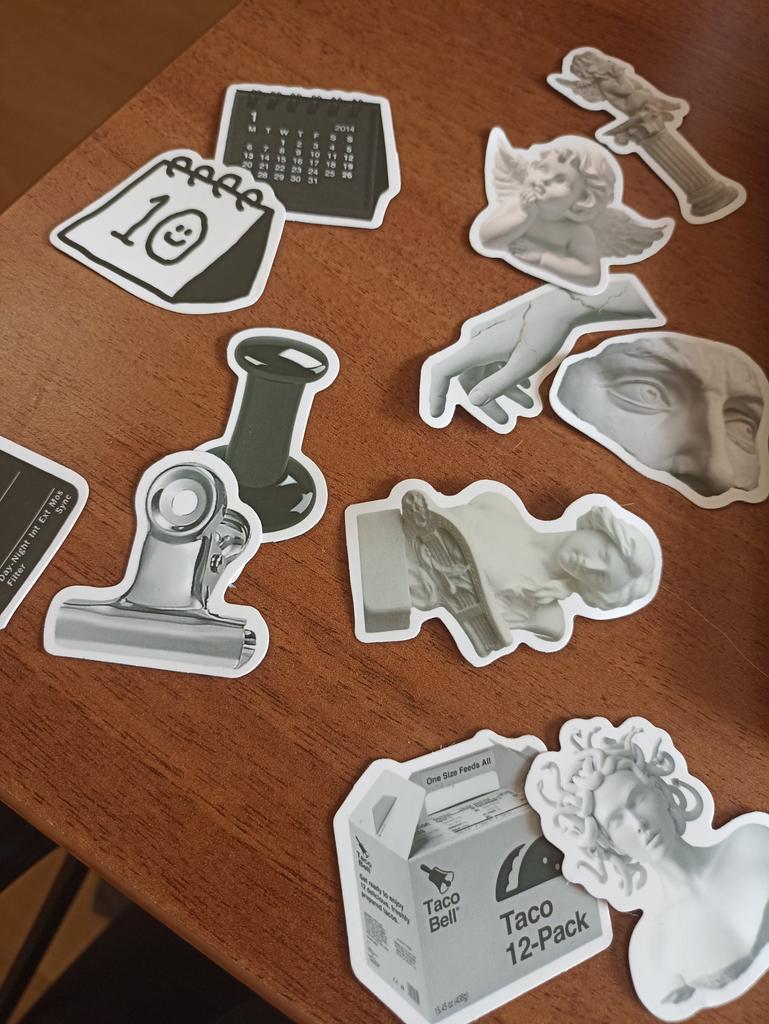 Ci sono adesivi con contenuti interessanti e ce ne sono di molto strani e non è chiaro dove possano essere utilizzati adesivi così strani. Anche se tutto dipende dai tuoi interessi... Una svolta retro-gotica. La qualità di stampa è simile; Ce ne sono di buona qualità e ce ne sono di media. In linea di principio, è economico e allegro, ma puoi realizzare i tuoi adesivi in una tipografia, una migliore qualità di stampa e non saranno molto più costosi di questo pacchetto di adesivi ✌🏻