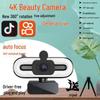 Webcam HD 2K Fixed Focus Beautify Fill-in Lighting USB Web Camera with Microphone Light Tripod for PC Twitch Skype OBS Steam