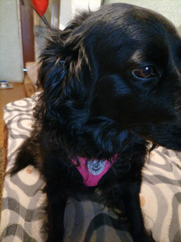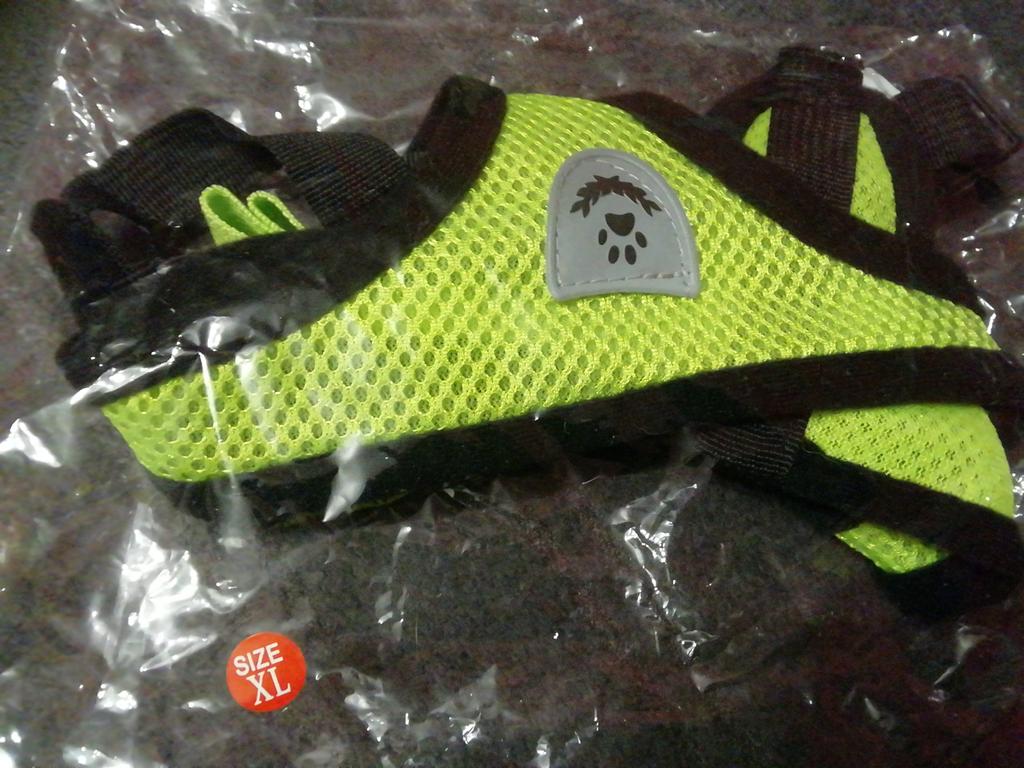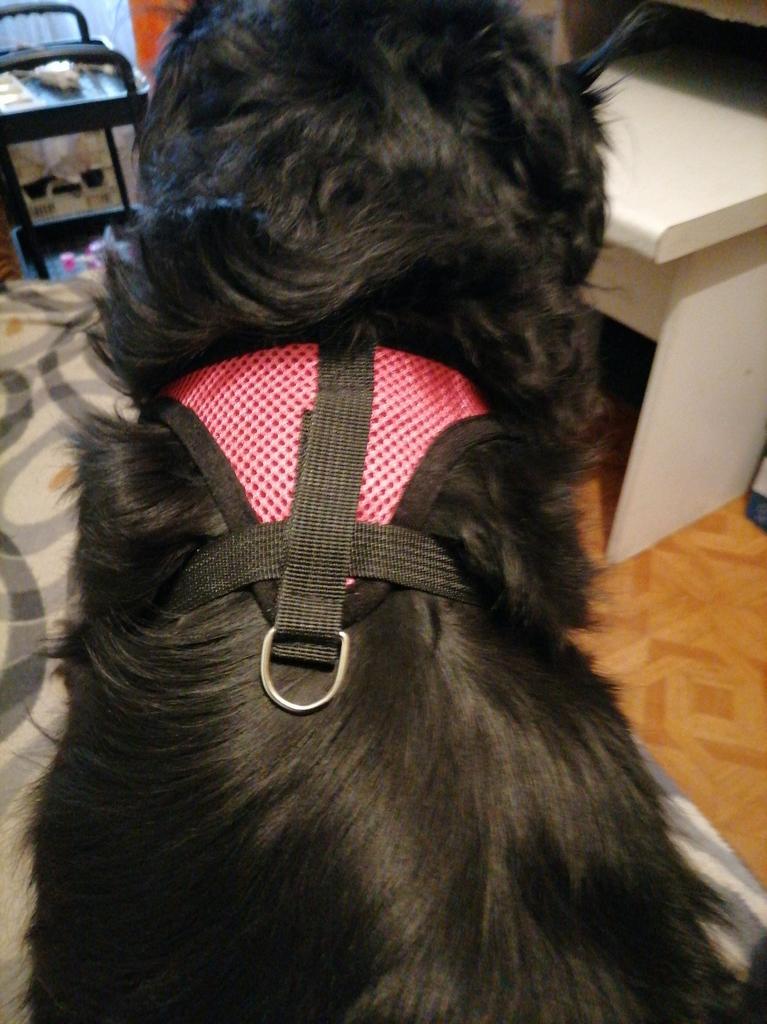 Invece della pettorina verde hanno messo quella nera, ed è piccola per il cane di 7 kg