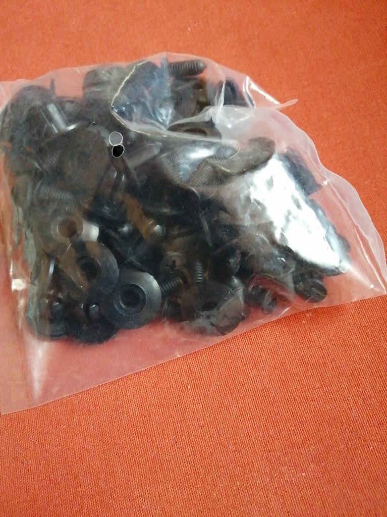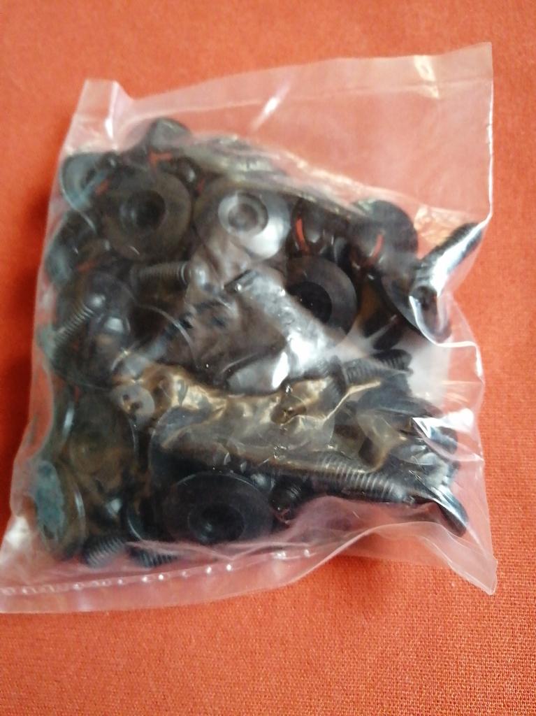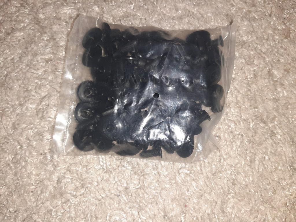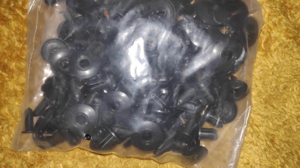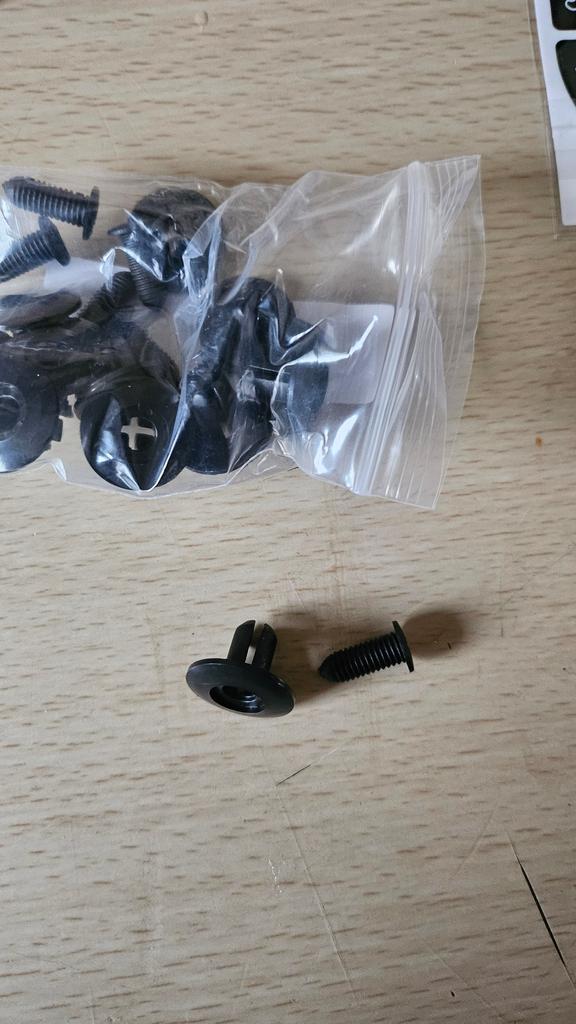 Elementi di fissaggio di qualità decente. La plastica non è dura, è abbastanza flessibile.