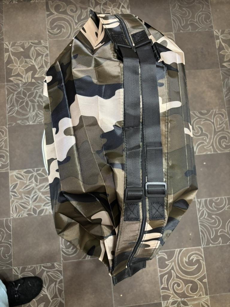 Una borsa grande molto bella. Questo è il secondo che ho. Occupa poco spazio nella borsa come borsa di riserva. Il materiale è simile al materiale dell'ombrello, ma più resistente.