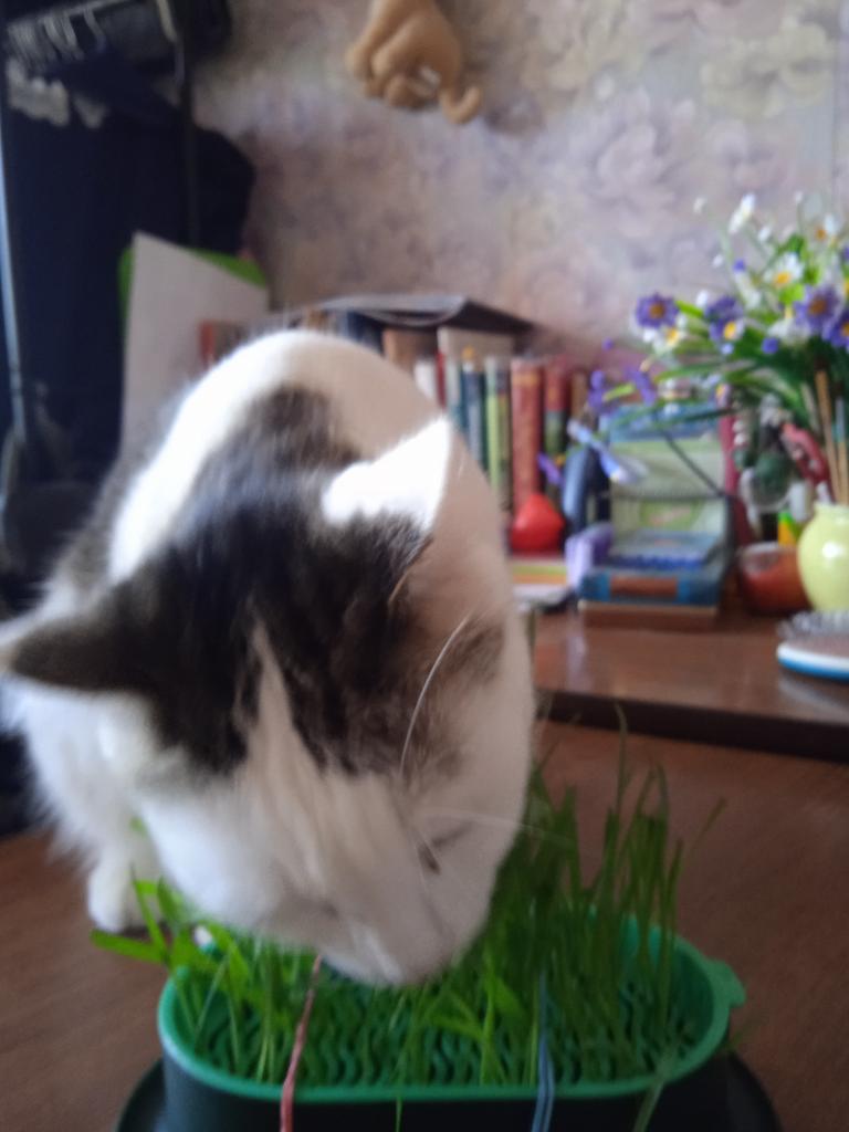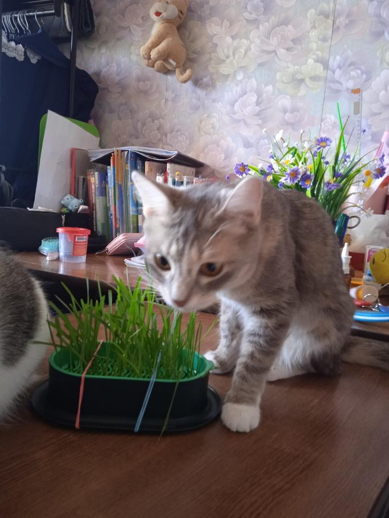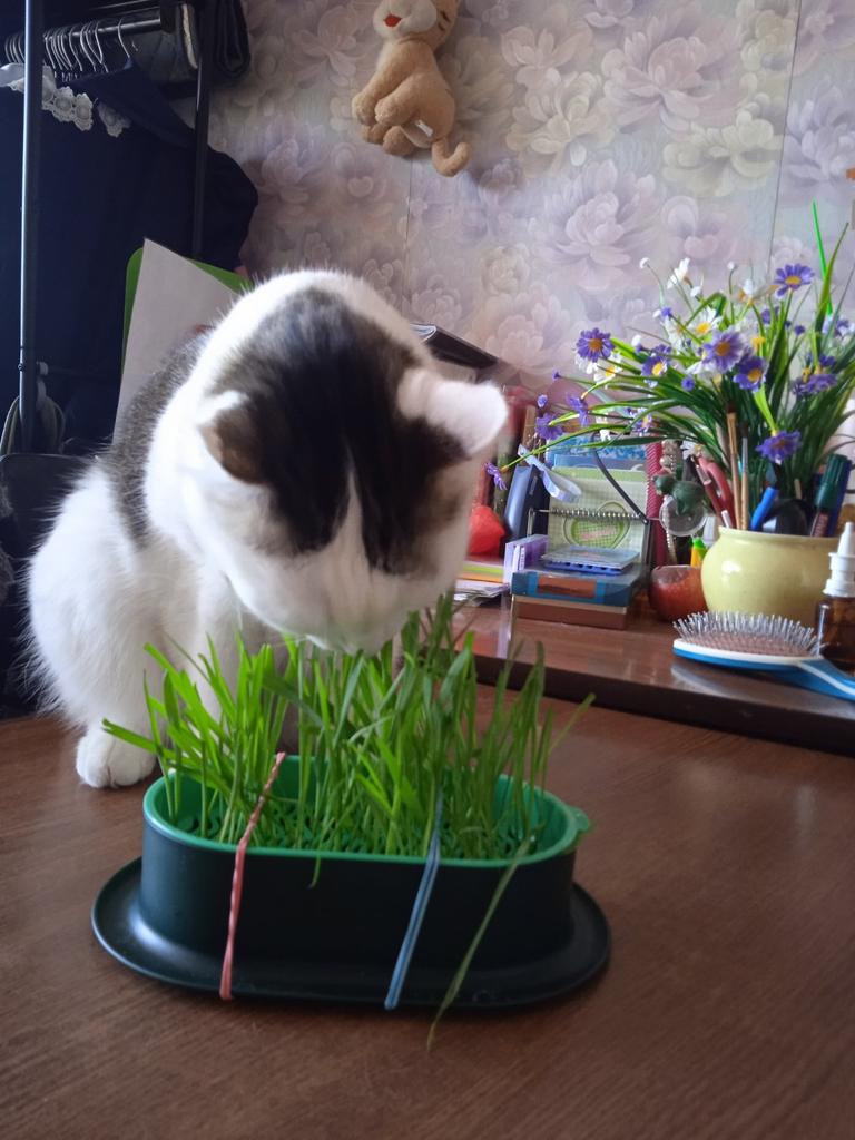 L'erba cresce, è pulita, non l'ho ancora data al gatto, aspetto che cresca più grande