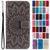 Custodia a portafoglio in pelle PU con girasole in rilievo per Samsung Xiaomi Redmi Custodia a portafoglio magnetica con cinturino a mano Huawei Honor con cavalletto