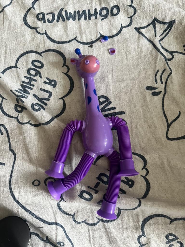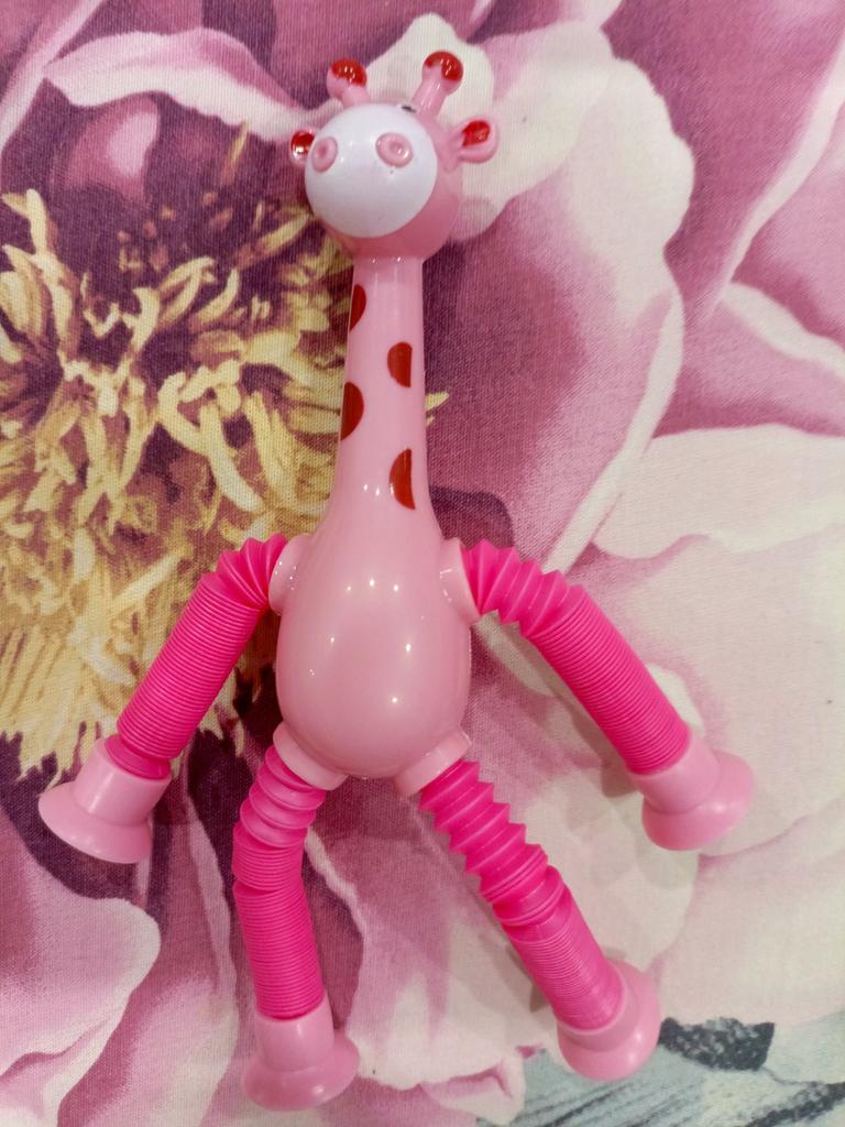 Mi è piaciuta la giraffa, è enorme, i tubi si allungano bene, le ventose sono spruzzate su una superficie liscia