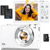 【Multi-functions Digital Camera】The digital camera features various functions, such as anti-shake, face detect, smile capture, continuous photography, self-timer, etc. And supports class-10 external TF memory card max. up to 128GB(not included) and comes with a 32GB memory card.