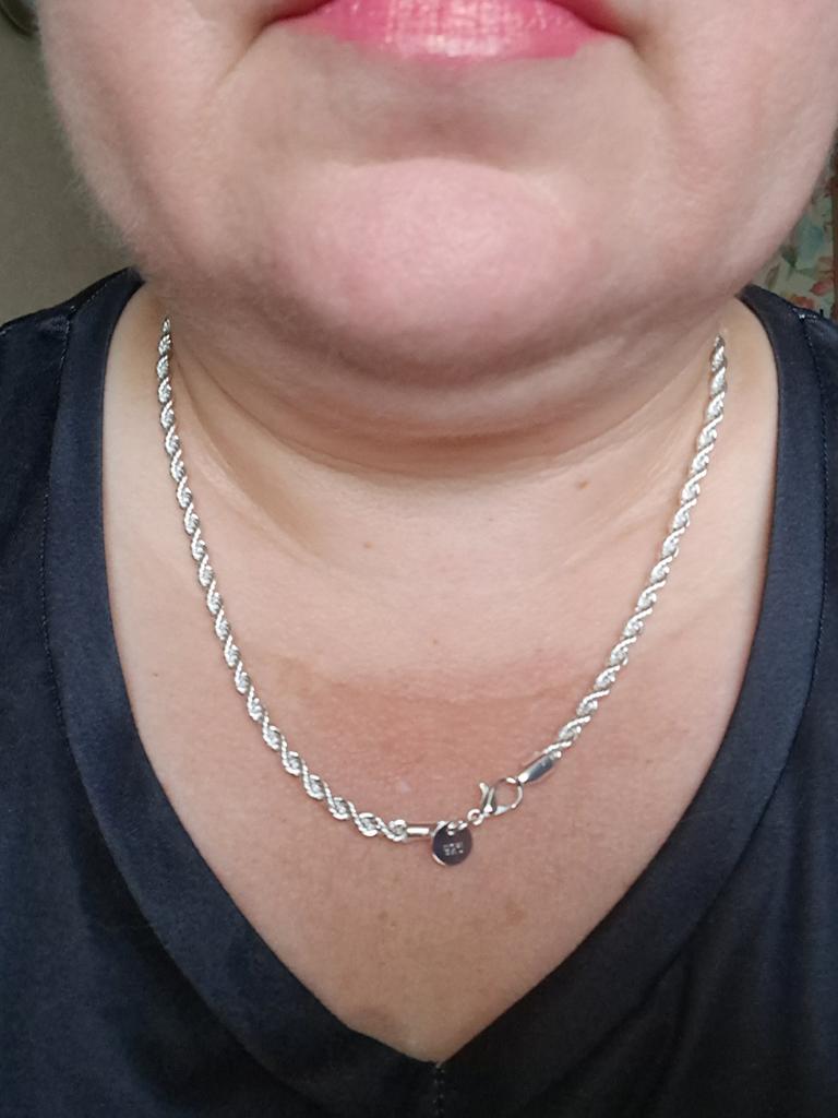 La catena è stata ricevuta, grazie al venditore! Sembra molto carino, come nella foto. Ma dopo averlo indossato per 1 settimana, nella zona in cui la catena si è scontrata, è comparsa un'eruzione cutanea su tutto il collo e prudeva. Questo è terribile!! Non c'è argento, tranne lo 0,0000000000001%. Le persone vengono ingannate. NON CONSIGLIO L'ACQUISTO DI QUESTI PRODOTTI. È un peccato non aver scattato una foto dell'eruzione cutanea. E apparve la ruggine. Foto della ruggine sulla catena