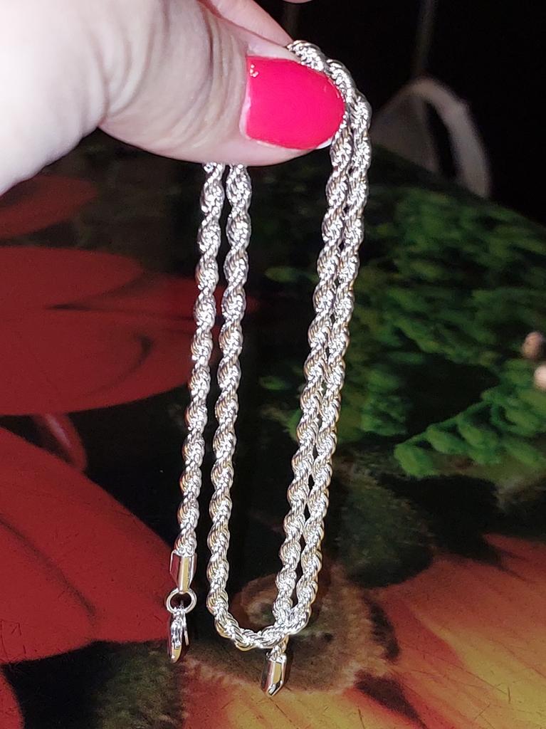 Collana con ciondolo a forma di catena da 4 mm in argento 925, con ciondolo da 16-24 pollici per donne e uomini, bella moda