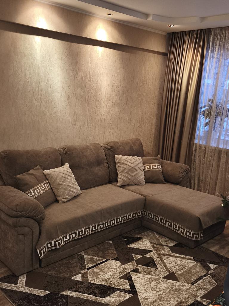 Il divano si è trasformato, si armonizza con la moquette a pavimento.