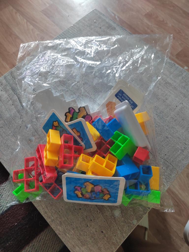 Corrisponde pienamente alla descrizione. Plastica di buona qualità senza alcun odore estraneo. Comoda scatola portaoggetti. Semplici regole del gioco che i bambini hanno capito molto velocemente. Adesso ogni giorno giochiamo almeno mezz'ora) Vorrei qualche dettaglio in più, ma ogni volta che giochiamo è chiaro che non si può costruire molto.