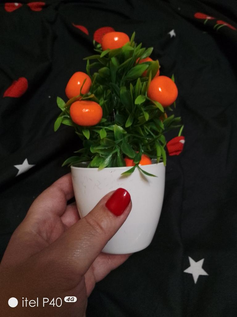 Eheh, quando l'ho aperto e ho visto l'🌳 albero con i mandarini 🍊, mi è venuta voglia di mangiare un 🍊 mandarino, sono così perfetti, molto reali L'albero 🌳molto bello 😍 Con un vaso 🪴 ideale per decorare qualsiasi stile di decorazione abbiamo, si combina con tutto 👌 È molto carino🥰 e appetitoso😃quanto è reale eheh Lo consiglio💯 Imballaggio perfetto📦, arrivato in ottime condizioni😍. Spedizione veloce ✈️ Si lava direttamente sotto il rubinetto 💦 Manutenzione facile 💪 Consigliato al 100% 💯