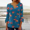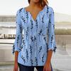 Summer Autumn A Line Slim Black White Floral T Shirt Women Loose Elegant 3/4 Sleeve Printed Tops Ladies Clothing