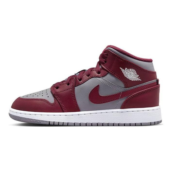 Air Jordan 1 Mid GS Rosso Ciliegio Scarpe da Ginnastica per Bambini Grigio Cemento Bianco DQ8423-615