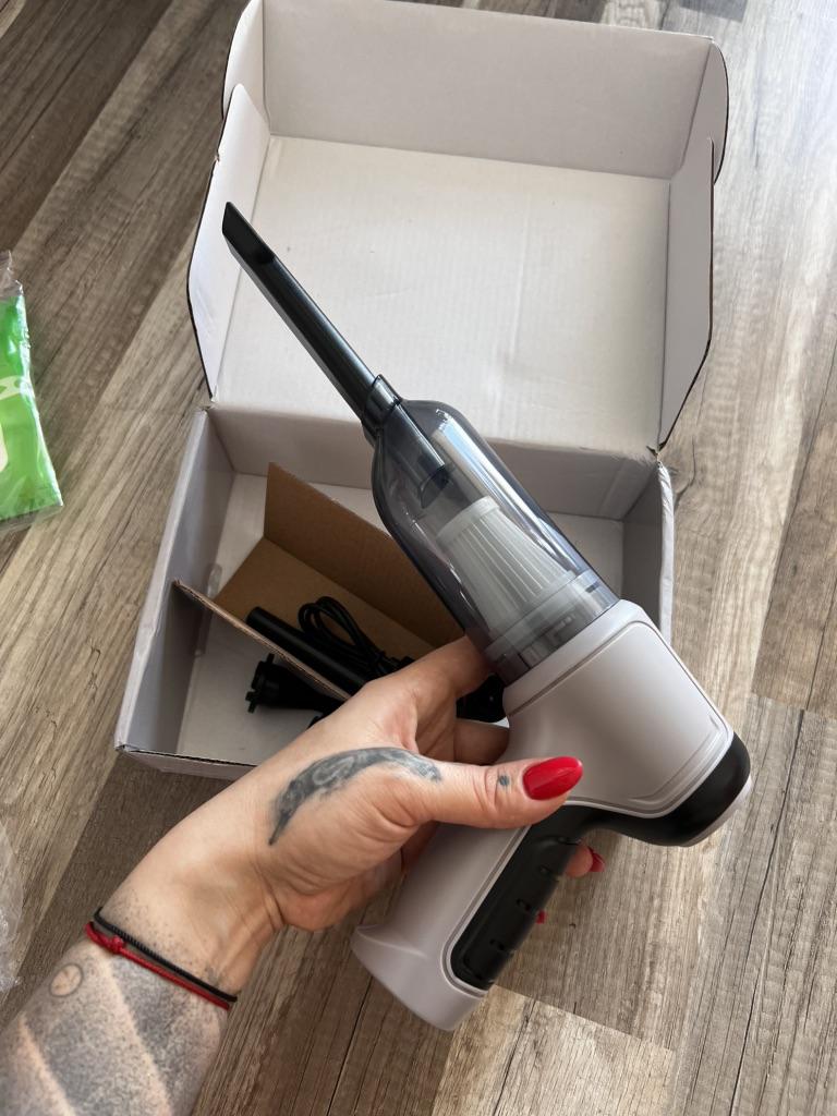 Molto conveniente! non così rumoroso come mi aspettavo. Molto più silenzioso dell'aspirapolvere manuale che avevamo. Non solo per le auto, ma anche per i computer, soffia la polvere dalla tastiera. Due potenze e alla prima velocità funziona tutto alla grande. È bello vedere quanto è confezionato. Nel video c'è una vecchia coperta e i fili sono già sbiaditi