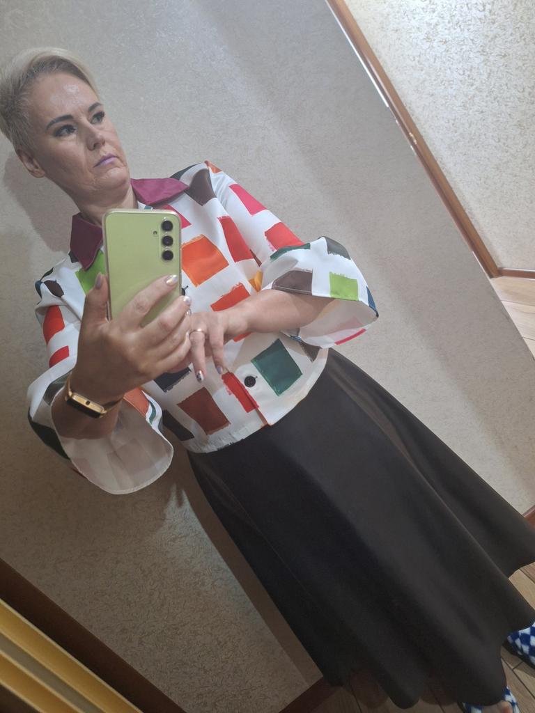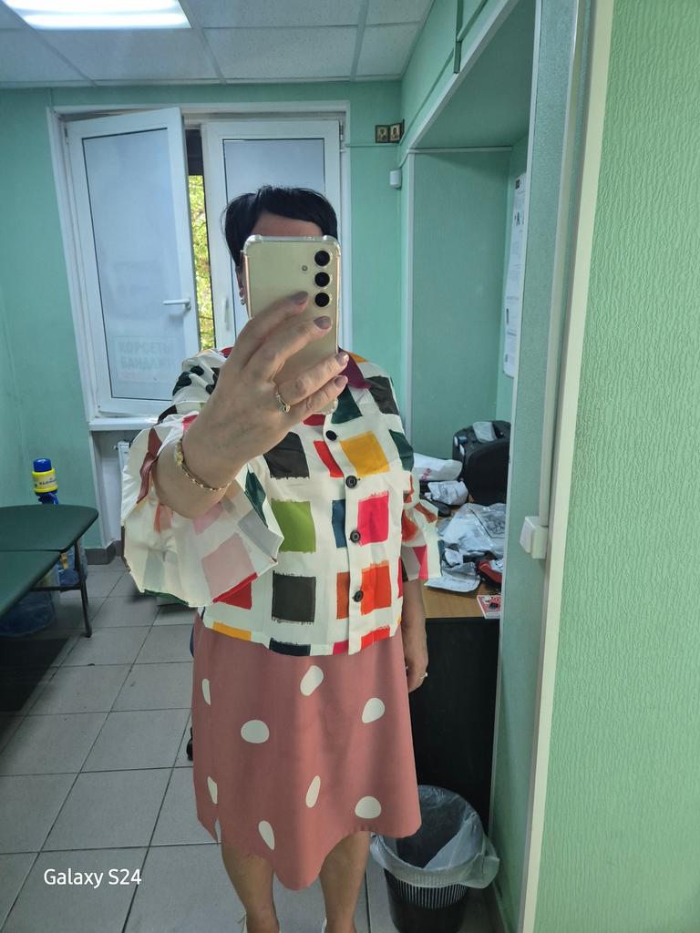 Sembra seta artificiale. Con una gonna abbinata, lo consiglio