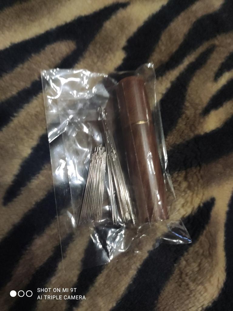 Imballaggio molto buono. Aghi molto creativi, non devo più indossare gli occhiali per infilare l'ago :) Un piccolo inconveniente è che ho ricevuto solo quelli argento e non un set di argento e oro come nelle foto. Non sono adatti per cucire la pelle naturale, ma possono essere utilizzati altri materiali.