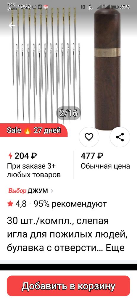 Set di aghi da cucito in una custodia per persone con problemi di vista ✔️Questo set di aghi da cucito diventerà uno strumento indispensabile per le persone con problemi di vista. ✔️Adatto per cucire articoli realizzati in vari materiali: pelle, denim, seta, tela, cotone, ecc.. ✔️Il set include 30 pezzi. ✔️Gli aghi sono forniti in una custodia di colore marrone-oro. ✔️Gli aghi sono disponibili in 2 versioni: completamente argentati e con occhielli dorati. Ne ho di argentati. ✔️Aghi di diverse dimensioni. ✔️Gli aghi da cucito sono realizzati in materiale metallico di alta qualità, durevole. ✔️Gli aghi hanno crune con una speciale curvatura. In questo modo è possibile infilare l'ago all'istante, evitando che il filo fuoriesca! La curvatura funziona come un lucchetto per un filo: è facile da infilare, ma non cadrà più.! Gli aghi sono super👍 Sono molto soddisfatto dell'ordine. Lo consiglio vivamente! ⭐⭐⭐⭐⭐