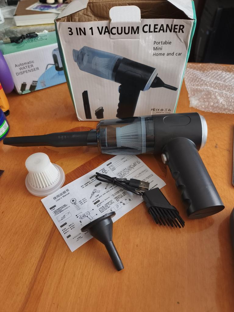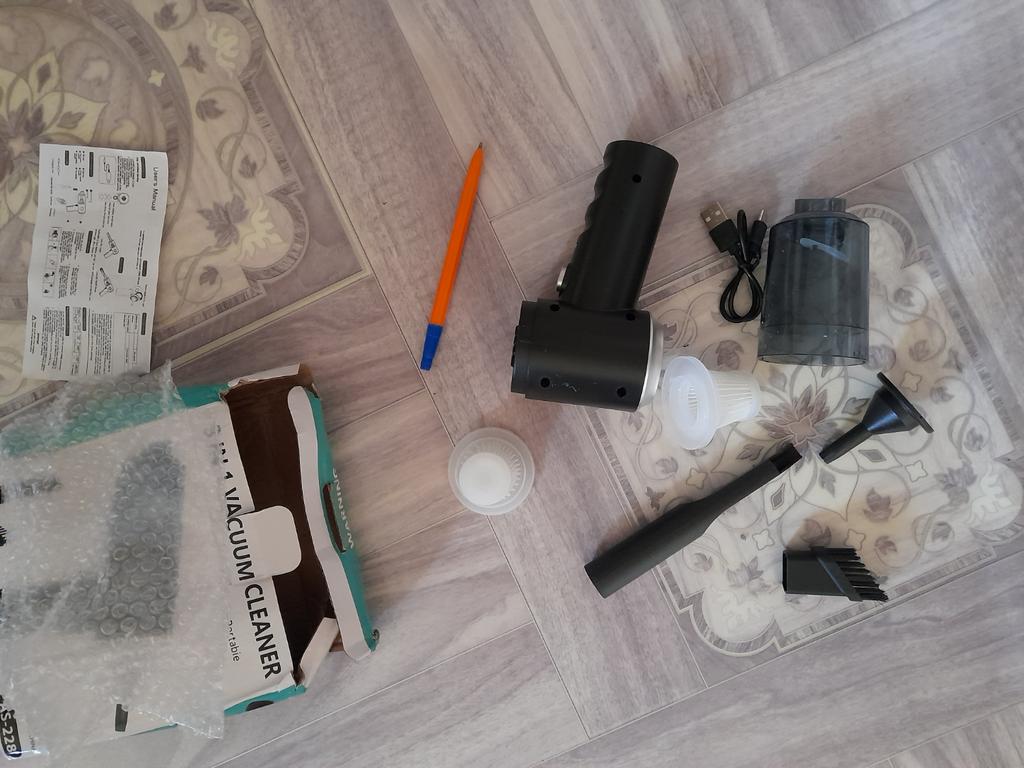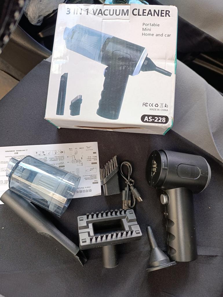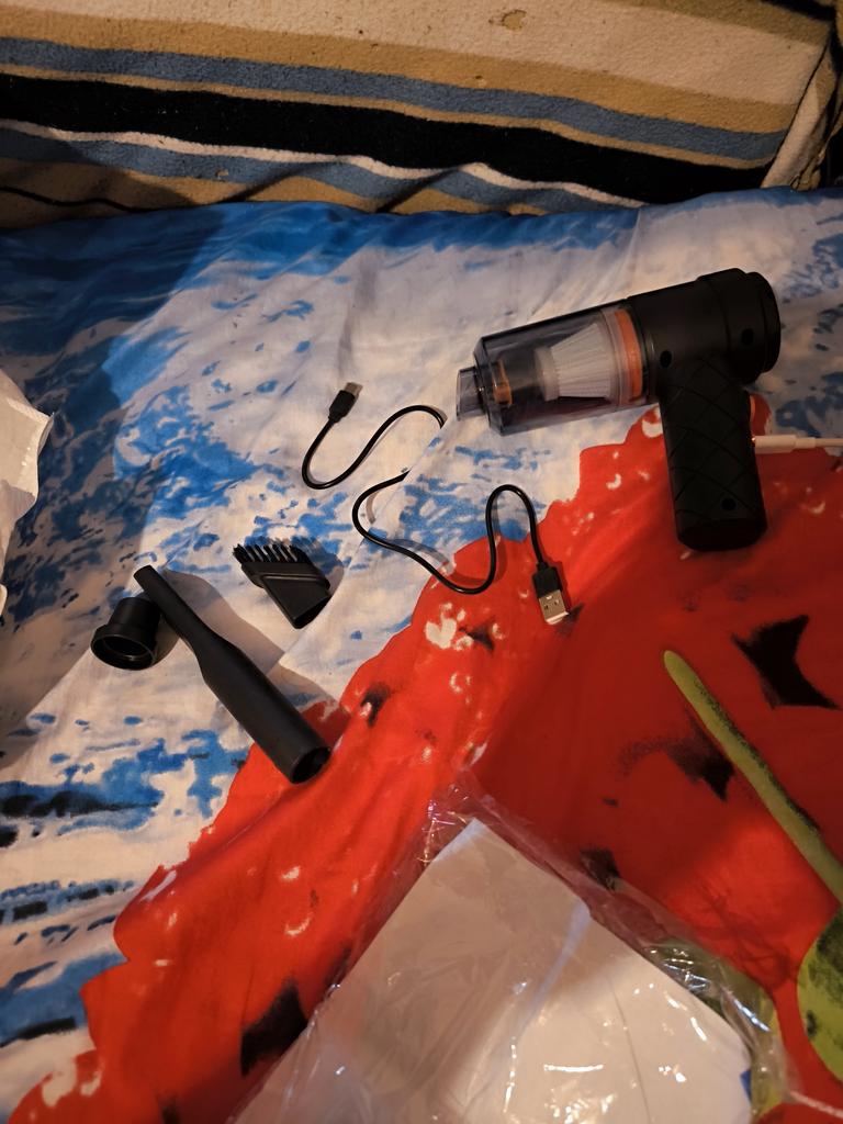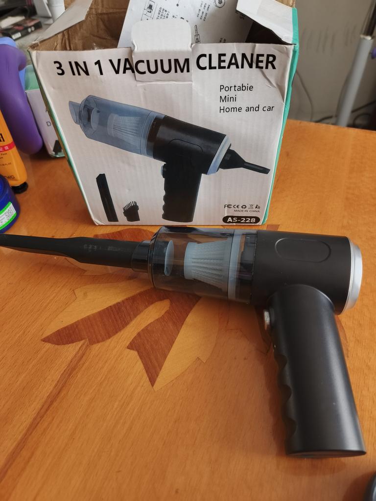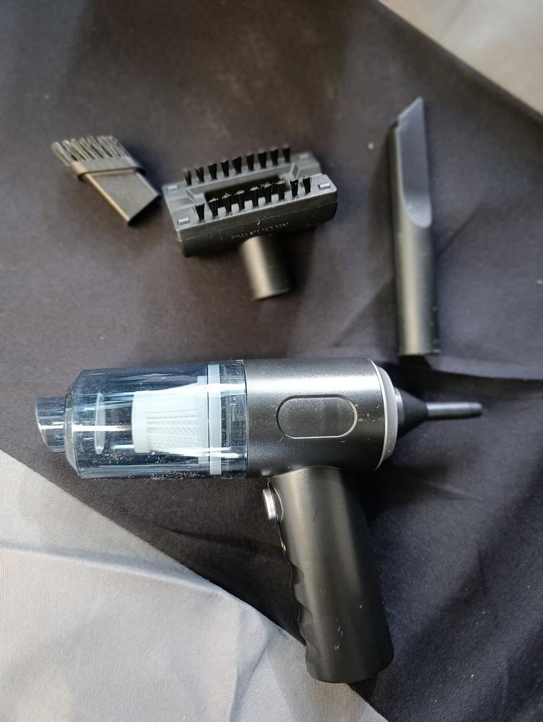 Aspirapolvere portatile senza fili per auto e casa Caratteristiche dell'aspirapolvere: ✅Il design compatto consente una facile manovrabilità. ✅Funzioni di aspirazione della polvere e illuminazione. ✅Alimentazione a batteria, ricaricabile tramite USB. ✅Potenza di aspirazione di circa 4000 Pa, che garantisce una pulizia efficace di piccoli detriti, polvere e capelli. L'aspirapolvere arriva nella scatola originale. Nella confezione: 4 accessori: un beccuccio lungo per i punti difficili da raggiungere, 2 accessori con setole e un accessorio per il soffiaggio inverso con il quale si può, ad esempio, gonfiare un palloncino. Un aspirapolvere del genere è un assistente indispensabile per mantenere una pulizia ideale nell'abitacolo dell'auto o in luoghi difficili da raggiungere in casa. Il design elegante completerà armoniosamente l'interno di qualsiasi veicolo.. L'aspirapolvere svolge il suo compito in modo eccellente. Soddisfatto dell'ordine. Raccomando!