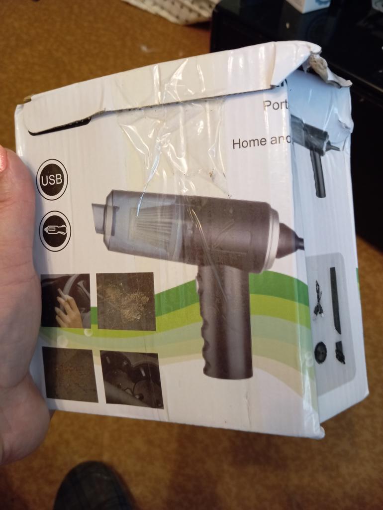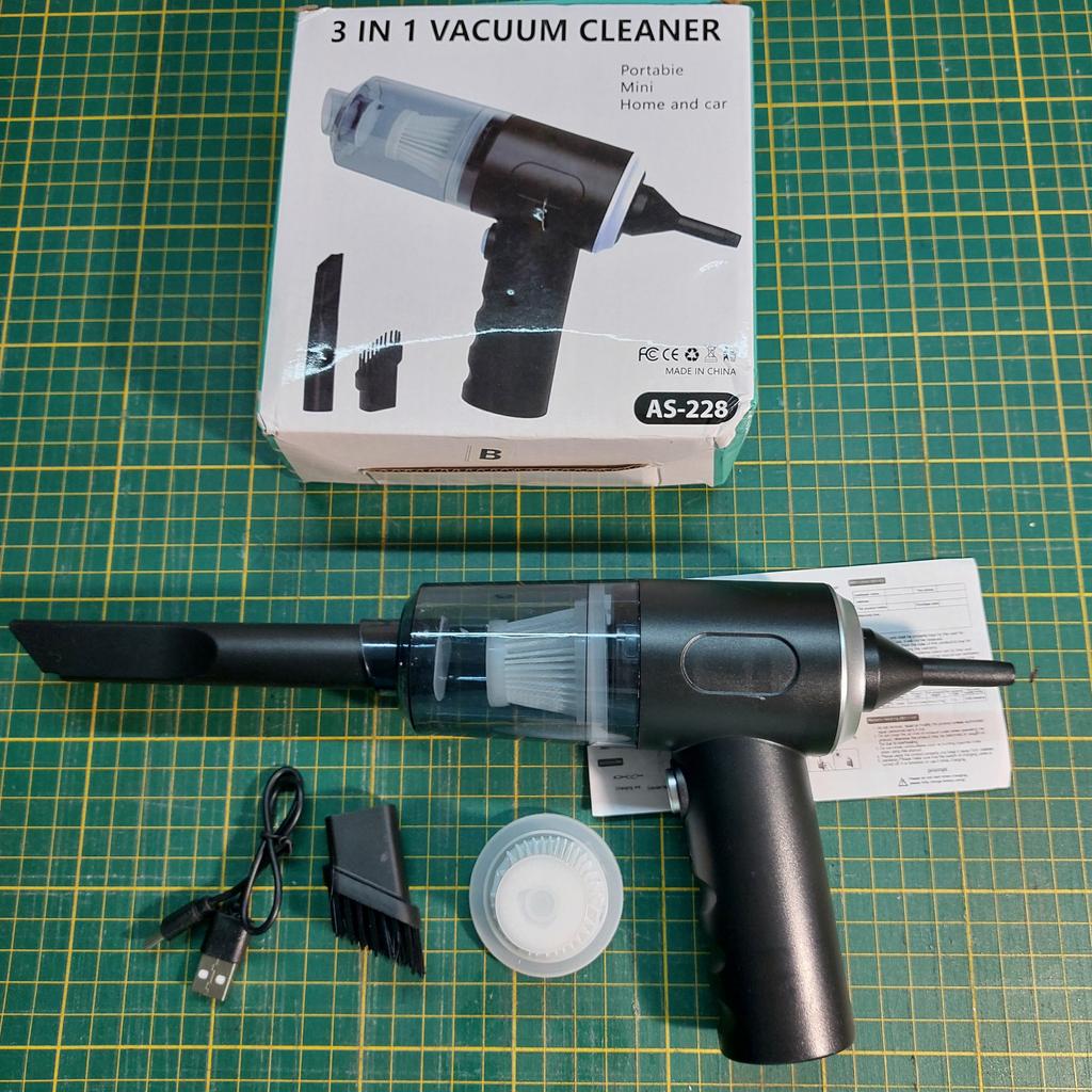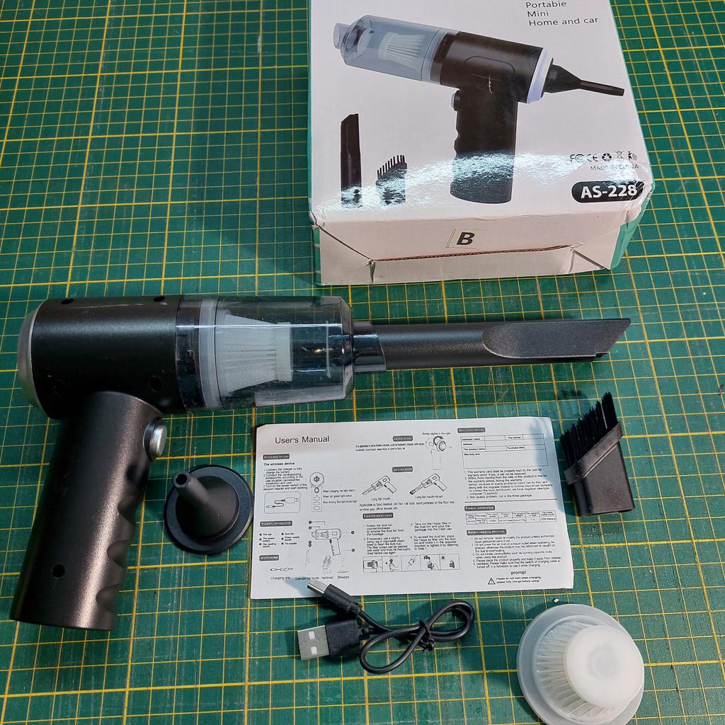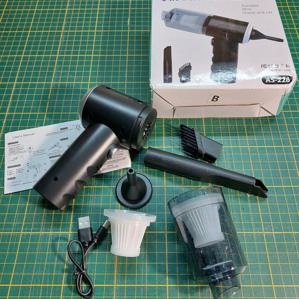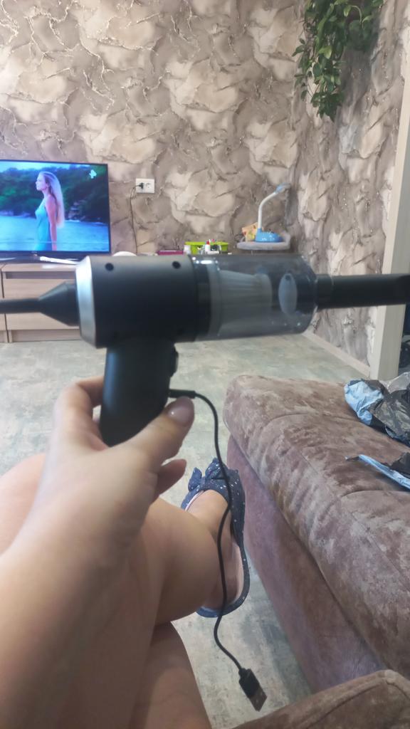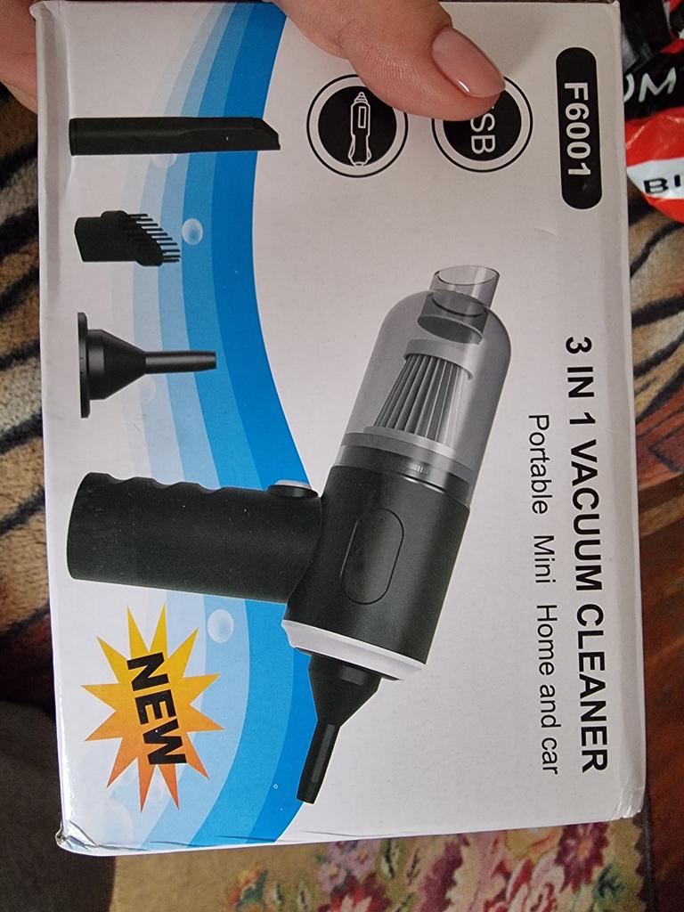 Aspirapolvere portatile senza fili per auto e casa Caratteristiche dell'aspirapolvere: ✅Il design compatto consente una facile manovrabilità. ✅Funzioni di aspirazione della polvere e illuminazione. ✅Alimentazione a batteria, ricaricabile tramite USB. ✅Potenza di aspirazione di circa 4000 Pa, che garantisce una pulizia efficace di piccoli detriti, polvere e capelli. L'aspirapolvere arriva nella scatola originale. Nella confezione: 4 accessori: un beccuccio lungo per i punti difficili da raggiungere, 2 accessori con setole e un accessorio per il soffiaggio inverso con il quale si può, ad esempio, gonfiare un palloncino. Un aspirapolvere del genere è un assistente indispensabile per mantenere una pulizia ideale nell'abitacolo dell'auto o in luoghi difficili da raggiungere in casa. Il design elegante completerà armoniosamente l'interno di qualsiasi veicolo.. L'aspirapolvere svolge il suo compito in modo eccellente. Soddisfatto dell'ordine. Raccomando!