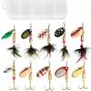 12 pezzi Esche Spinner in Metallo Duro per Pesca al Black Bass Trota Salmone con Scatola per Attrezzatura, Kit di Esche da Pesca Spinner Piumate