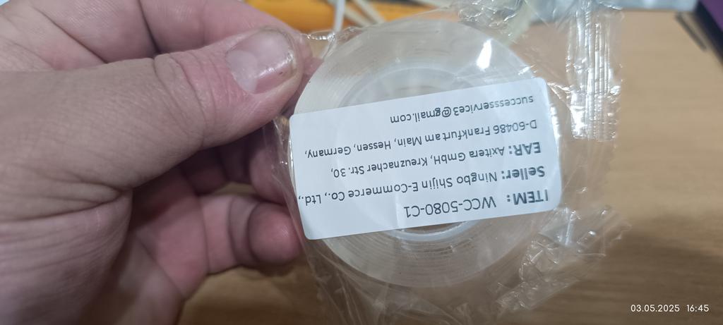 Il nastro biadesivo soddisfa i requisiti, aderisce saldamente, lo strato protettivo si rimuove facilmente. Sono soddisfatto del prodotto. Grazie.
