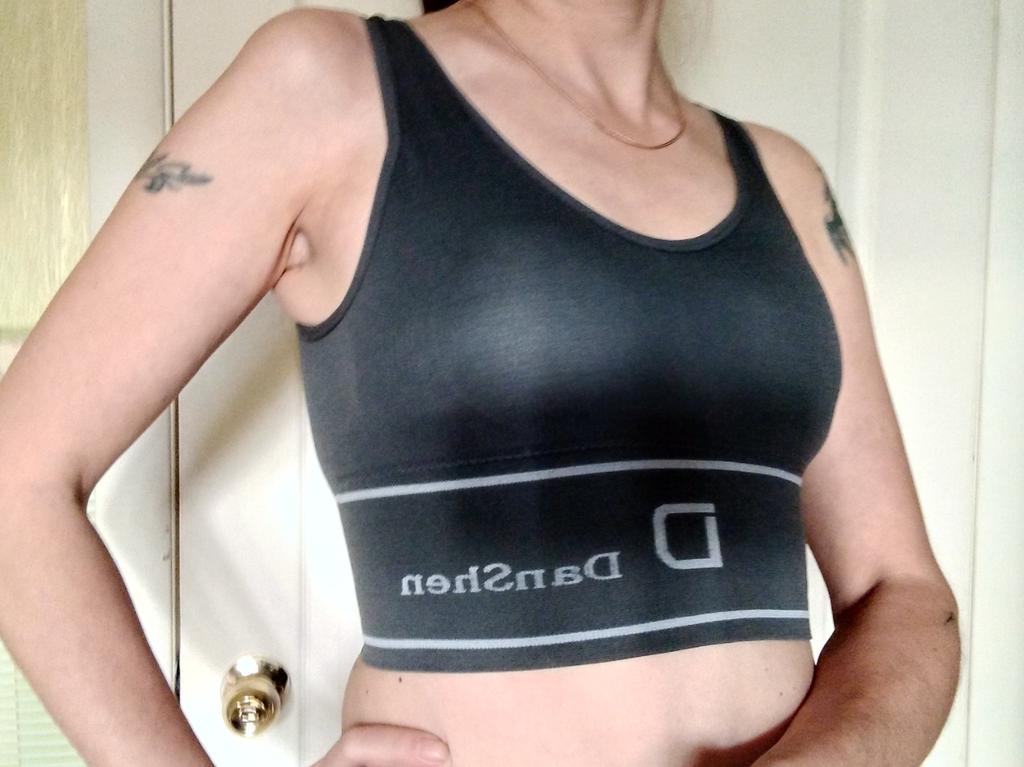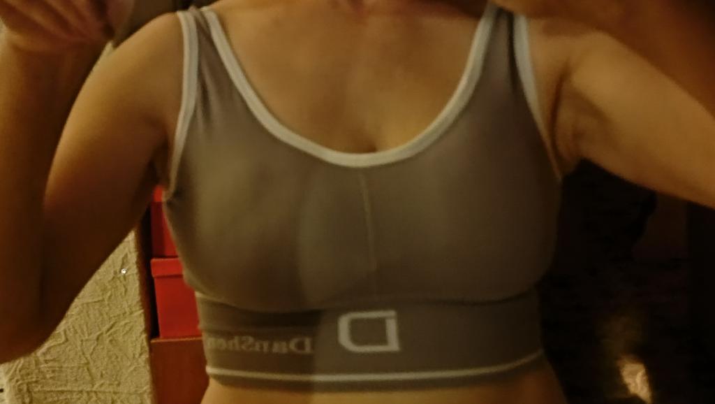 Le coppe sono un po' visibili, il che significa che non posso indossarle separatamente come top sportivo.. Ma entrerà sotto i vestiti. Forse se avessi ordinato una taglia più grande sarebbe andato tutto bene. Ma l'ho preso secondo la descrizione, eccolo fino a 92, ma ne ho 88