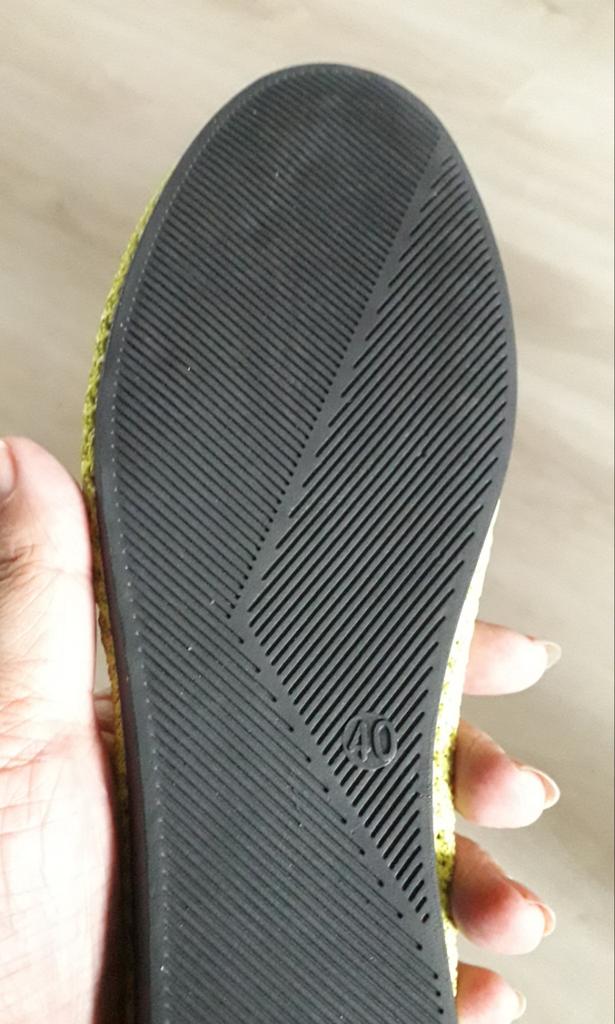 Molto comode e leggere. Per le mie misure 37,5-38, ho ordinato il 39. Con i "treads", che ho ordinato sempre da "Jum", mi vanno perfettamente. La superficie è realizzata in maglia fitta. Sto già testando la suola, finché resisterà al nostro asfalto "non standard". Pertanto, per ora lo consiglio. Non è un odore molto persistente. Né arieggiando sul balcone né indossando le scarpe si riesce ad eliminare il cattivo odore. La suola non è di alta qualità, allego una foto. Dopo la prima, rapida pulizia manuale, la tomaia è rimasta indietro rispetto alla suola. Base superiore-10; sole-0. Tra l'altro, l'odore sgradevole non è mai scomparso. Non lo consiglio...