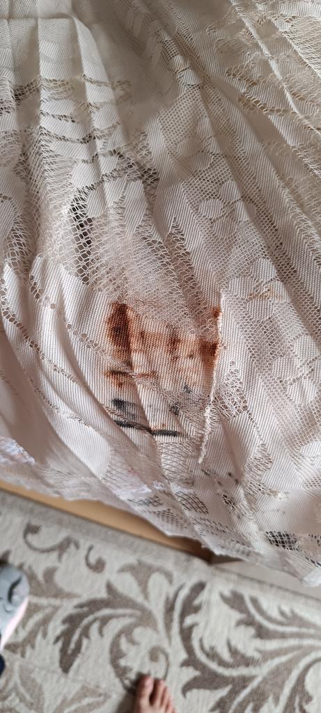 Il tessuto è rovinato. La macchia non si lava via. Era meglio non comprarlo