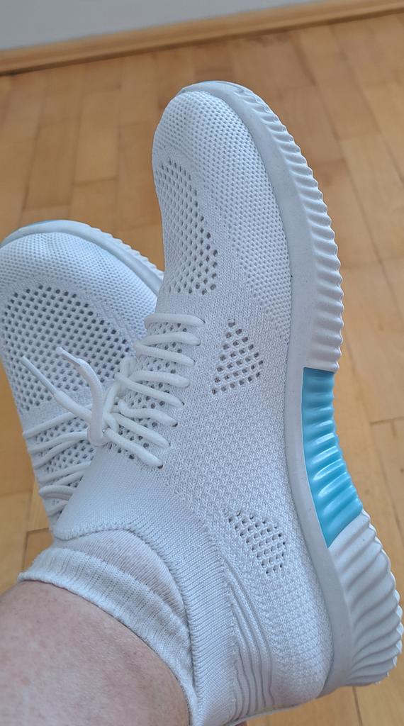 Buone scarpe da ginnastica, molto traspiranti, molto leggere. La suola è in gomma, molto morbida, la sensazione è come in pantofole.
