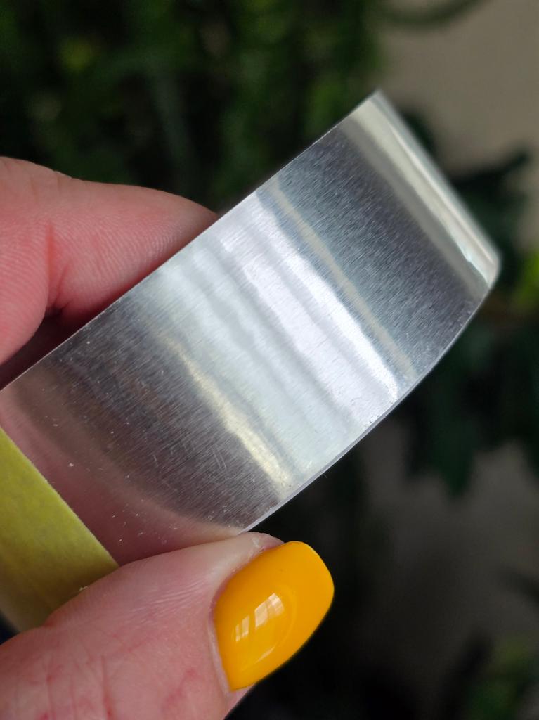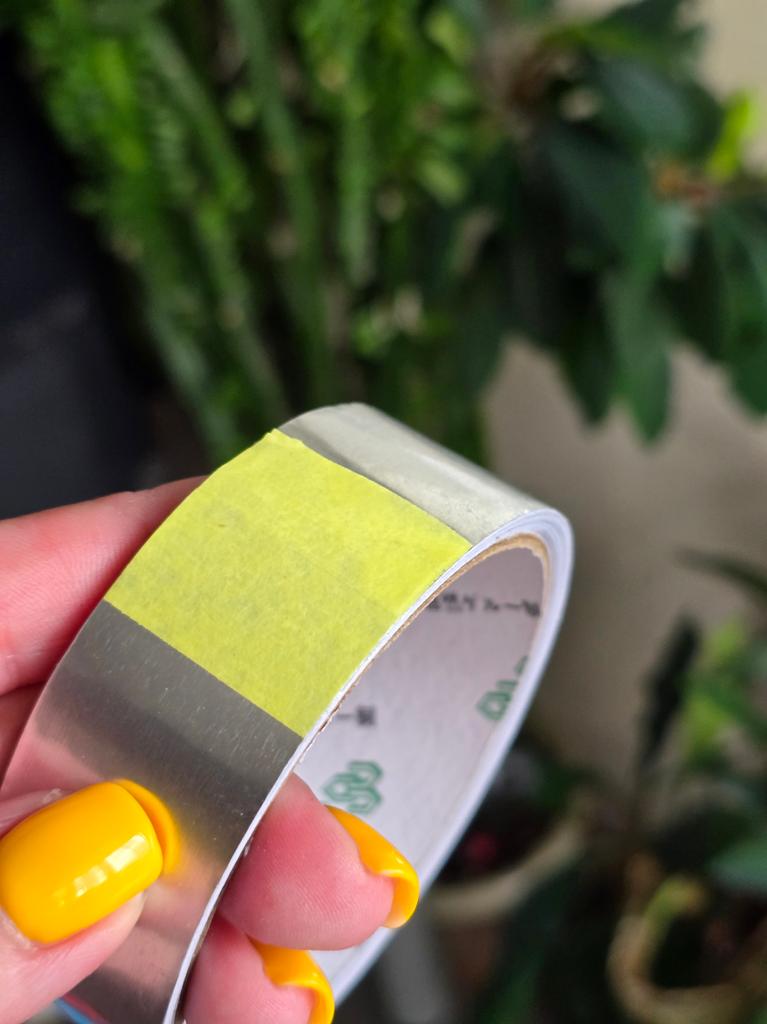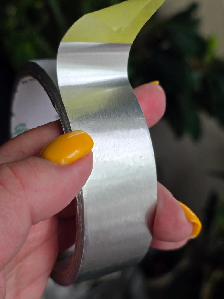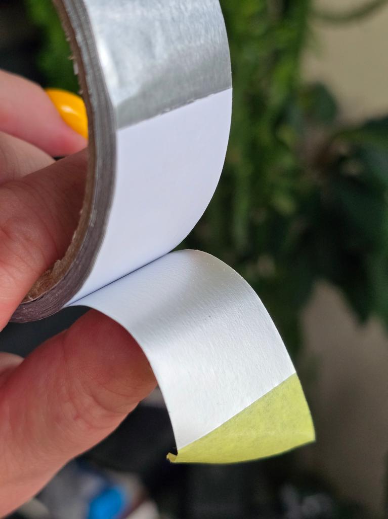 Nastro in alluminio con base adesiva. Il nastro in alluminio ha eccellenti proprietà di isolamento termico: riflette i raggi UV, è resistente alle alte temperature e agli sbalzi di temperatura, motivo per cui viene spesso utilizzato per lavori di sigillatura e isolamento termico, ad esempio per isolare i condotti dell'aria. Viene spesso chiamato "Foil" o "Nastro di alluminio". Molto sottile. La merce è soddisfatta.