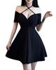 Goth Dark Maglietta Gotica alla Moda da Donna Ragazza Spalla Fredda Scollo Halter Catena Magliette Punk Top Abbigliamento da Festa Clubwear Slim Lady Schiena Nuda