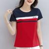 T-shirt Estiva da Donna in Cotone Ricamato a Maniche Corte Moda Donna Top con Cuciture a Mezza Manica