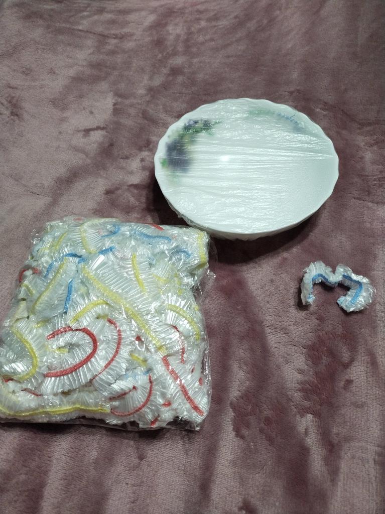 La pellicola trasparente sull'elastico copre molto bene i piatti. Io ho un diametro piccolo, ma ci sta anche uno più grande! Non sono luminosi come nella foto del venditore, ma svolgono il loro compito.