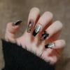 24pz Unghie Finte Indossabili Nero Fiocco Catena di Diamanti Polvere Scintillante Unghie da Balletto Fatte Finitura Rimovibile e Riutilizzabile Patch per Unghie