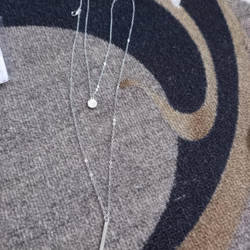 Collana doppia con diamanti quadrati lampeggianti Collana doppia geometrica rotonda Collana clavicola femminile Collana temperamento freddo e semplice di nicchia femminile