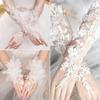 Guanti lunghi da sposa ritagliati in pizzo idrosolubile con fiori, ganci per trapano assegnati agli accessori per guanti da ballo