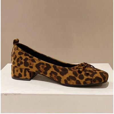 Nuovo Design alla Moda Tacco Quadrato Fiocco Comode Versatili Resistenti all'Usura Stampa Leopardo Scarpe Tacchi Bassi Décolleté Zapatos