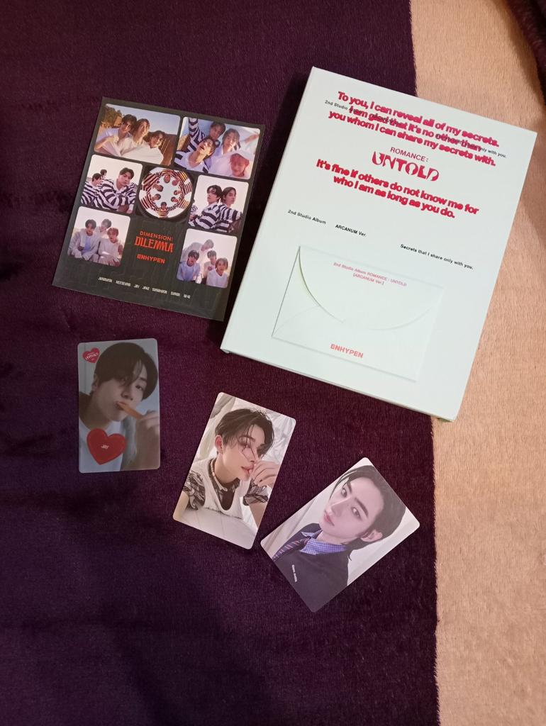 L'ordine è arrivato molto velocemente e molto ben confezionato. Viene fornito con due cartoline fotografiche (Jake e Sunghoon). L'album arriva in una piccola scatola verde (ecco perché ho preso Arcanum Ver., vado pazzo per quelli verdi) con: miniposter, set di adesivi, cartolina di Jay, fotolibro e cartoline di Jay e Jake, e il cd. Discoteca: Stregato dalla luna XO (Solo se dici di sì) Solo i tuoi occhi Cento cuori spezzati Ha portato il calore nero Paranormale Regalità Autostrada 1009 XO (versione inglese) Feat. JVKE #enhypen #엔하이픈 #engene #romance #untold #jungwon #heeseeung #jay #jake #sunghoon #niki #hybe #belift #kpop #xo