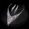 Set di collana da sposa, catena a griffe in rame, diamante pieno, colletto geometrico di lusso, set di due pezzi, gioielli da donna